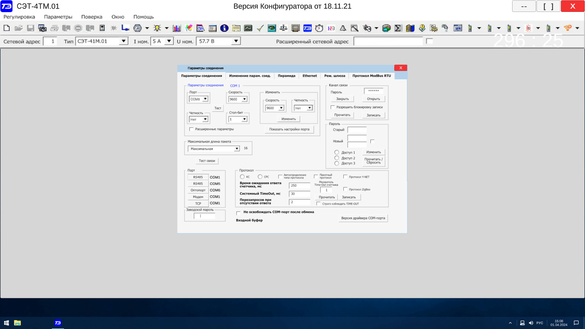 • Подключить УСПД к компьютеру и задать настройки конфигурации для передачи данных